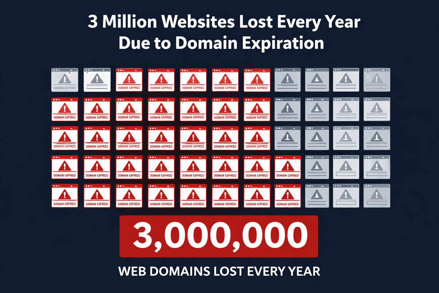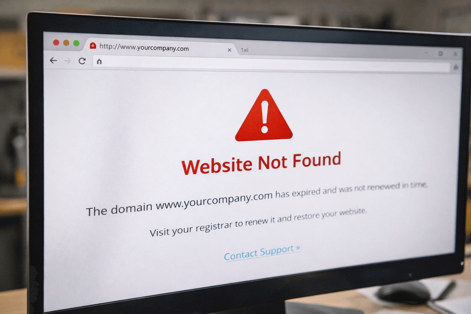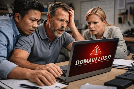Just last week, a past customer reached out in full panic mode. His domain expired. The one he’s used for YEARS. The one printed on business cards, wrapped on trucks, shared on Google, and mentioned in every single one of his marketing efforts.